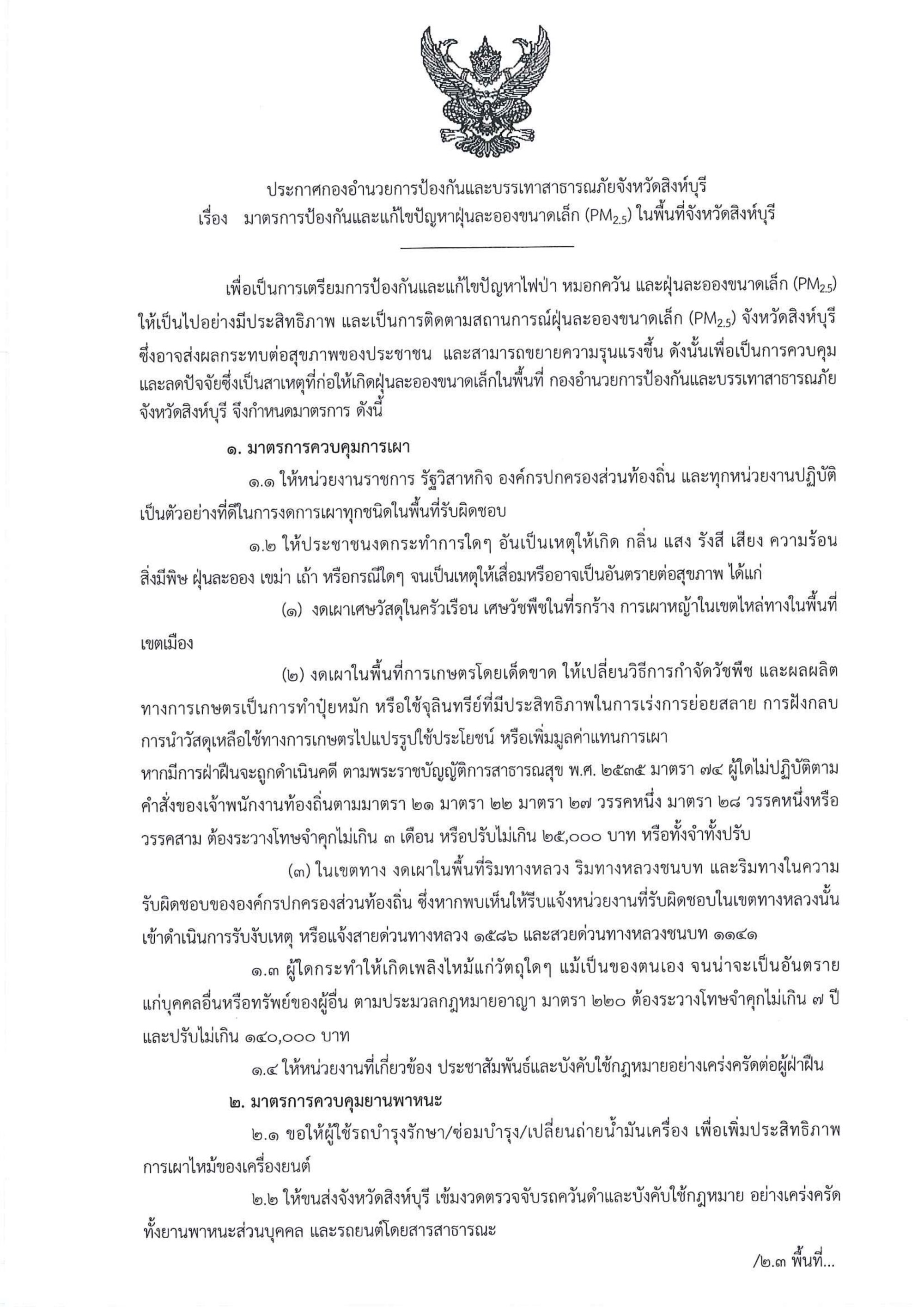 มาตรการป้องกันเเละเเก้ไขปัญหาฝุ่นละอองขนาดเล็ก (PM2.5) ในพื้นที่จังหวัดสิงห์บุรีBy admin_doae / 30 กรกฎาคม 2025
