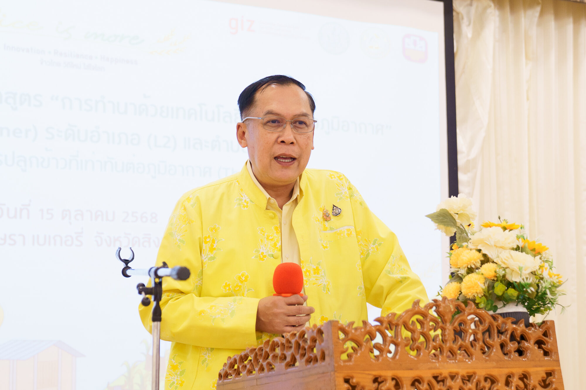 วันพุธที่ 15 ตุลาคม พ.ศ. 2568 นายชาญณรงค์ วิรุณสาร เกษตรจังหวัดสิงห์บุรี พร้อมด้วย หัวหน้ากลุ่ม เกษตรอำเภอ เเละเจ้าหน้าที่นักวิชาการส่งเสริมการเกษตร ทั้งระดับจังหวัดเเละระดับอำเภอ เข้าร่วมการอบรมเพื่อพัฒนาวิทยากร หลักสูตร “การทำนาด้วยเทคโนโลยีที่เท่าทันต่อภูมิอากาศ” ณ ห้องจัดเลี้ยงเกษรา เบเกอรี่ อำเภอพรหมบุรี จังหวัดสิงห์บุรี โดยมี นายวราดิศร อ่อนนุช รองผู้ว่าราชการจังหวัดสิงห์บุรี เป็นประธานในพิธีเปิดฯ