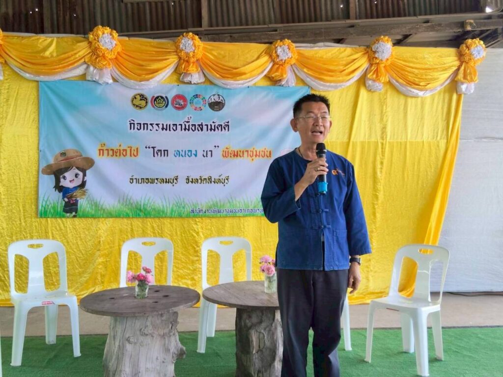 วันศุกร์ที่ 12 กันยายน 2568 ว่าที่ ร.ต.รุ่งโรจน์ สินธุ์เทียม เกษตรอำเภอพรหมบุรี พร้อมด้วย นักวิชาการส่งเสริมการเกษตร สำนักงานเกษตรอำเภอพรหมบุรี ร่วมกับสำนักงานพัฒนาชุมชนจังหวัดสิงห์บุรี สำนักงานพัฒนาชุมชนอำเภอพรหมบุรี สถานีพัฒนาที่ดินจังหวัดสิงห์บุรี องค์การบริหารส่วนตำบลบ้านหม้อ และชมรมศิษย์เก่าโรงเรียนพรหมบุรีรัชดาภิเษก ร่วมกิจกรรม “เอามื้อสามัคคี” ณ ศูนย์เรียนรู้ โคก หนอง นา แปลง นายบรีชา สืบชนะกิจกุล โดยภายในงานมีกิจกรรมเสวนา เรื่อง “การยกระดับศักยภาพศูนย์เรียนรู้ โคก หนอง นา” สู่ โคก หนอง นา ระดับ A พร้อมทั้ง เยี่ยมชมบูธเครือข่าย “โคก หนอง นา” โดยมีนายสุเมธ ธีรนิติ ผู้ว่าราชการจังหวัดสิงห์บุรี เป็นประธานฯ ณ ศูนย์เรียนรู้ โคก หนอง นา แปลง นายบรีชา สืบชนะกิจกุล ม.5 ตำบลบ้านหม้อ อำเภอพรหมบุรี จังหวัดสิงห์บุรี