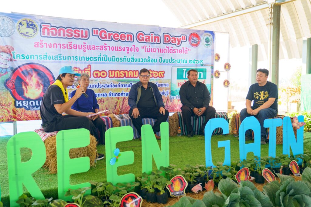 วันศุกร์ที่ 30 มกราคม 2569 ว่าที่ ร.ต.รุ่งโรจน์ สินธุ์เทียม เกษตรอำเภอพรหมบุรี พร้อมด้วย นางสาวเอื้อมพร สวัสดิพงษ์ และนายบรรพต ลาภแก้ว นักวิชาการส่งเสริมการเกษตรปฏิบัติ ร่วมงาน “Green Gain Day” สร้างการเรียนรู้และสร้างแรงจูงใจ “ไม่เผาแต่ได้รายได้” โครงการส่งเสริมการเกษตรที่เป็นมิตรกับสิ่งแวดล้อม ปี พ.ศ. 2569 โดย นายวราดิศร อ่อนนุช ผู้ว่าราชการจังหวัดสิงห์บุรี เป็นประธานในพิธีเปิดงานฯ ณ องค์การบริหารส่วนตำบลโพทะเล อำเภอค่ายบางระจัน จังหวัดสิงห์บุรี